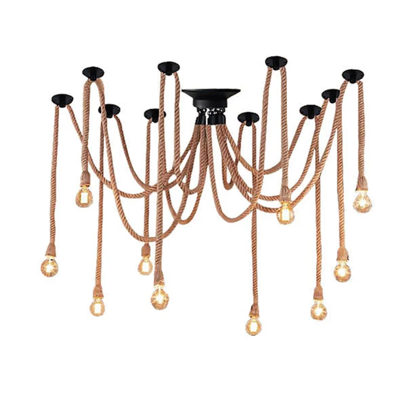 چراغ آویز 10شعله کنفی لوسترطهران محصولی جدید برند OWL با سبک صنعتی است که جدیدا عرضه شده و بسیار مناسب دیزاین های هنری و مینیمالیسم است.این محصول بدلیل نصب دلخواه اویزها در مکان های دلخواه روی سقف بخوبی میتواند پوشش نور کامل را در همه جا ایجاد کند و مزیت دیگری که دارد این است که سقف را پر و شلوغ میکند. مشخصات محصول: دارای پایه فلزی و آویز از جنس کنف با سایز 1سانتیمتر است.طول هر آویز 150 سانتیمتر است که به دلخواه خودتان می توانید با گره زدن های متفاوت و هنری آن را دیزاین کنید.قطر کفی محصول 12سانت است. هر عدد از این محصول بسیار سبک بوده و روی سقف کاذب هم به آسانی نصب می شود.داخل کارتن محصول همه اقلام نصب از جمله 10عدد پایه نگهدارنده کنف روی سقف موجود است که نیاز به دریل ندارد و براحتی با پیچگوشتی به سقف نصب می شود.البته اگر تمایل ندارید سقف سوراخ شود میتوانید بجای استفاده از این پایه ها از پونز و نخ نامرعی استفاده کنید.برای نصب پایه کفی گرد اصلی پیشنهاد میشود از دریل و پیچ و رولپلاک موجود در بسته استفاده کنید ولی میتوانید در صورت موجود بودن قلاب در سقف،ان را اویز کنید. رنگ کفی مشکی با کیفیت کوره ای است که دوام بالایی دارد و با کشیدن ناخن و بنزین رنگش نمی رود.برای تمیز کردن براحتی می توانید با شیشه پاک کن یا بنزین آن را پاک کنید.نصب ان بسیار راحت است و نیاز به اطلاعات خاصی نیست و براحتی می توانید نصب کنید.برای عمر بیشتر این محصول از لامپ های LED یا کم مصرف استفاده کنید.در انتها مجددا ذکر می شود که این محصول بدون لامپ ارسال می شود و لامپهایی که در عکس اول مشاهده می کنید لامپ ادیسونی موجود در بازار است و حباب نیست که تنوع و اشکال زیادی دارد که باسلیقه خودتان می توانید تهیه کنید .سرپیچ لوستر از نوع E27 و به اصطلاح سرپیچ بزرگ است که همه نوع لامپی را از جمله کم مصرف و led و ادیسونی و..میتوانید روی ان نصب کنید